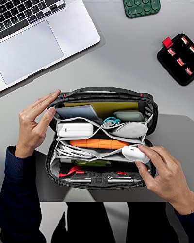 Tomtoc elektronische organiseerder. Accessoire Tech Pouch voor MacBook oplader, kabels, powerbank, harde schijf, reissnoeren, waterbestendige opbergtas met afneembare kaartsleuven voor USB-adapter, geheugenkaart, Zwart, 2.4L