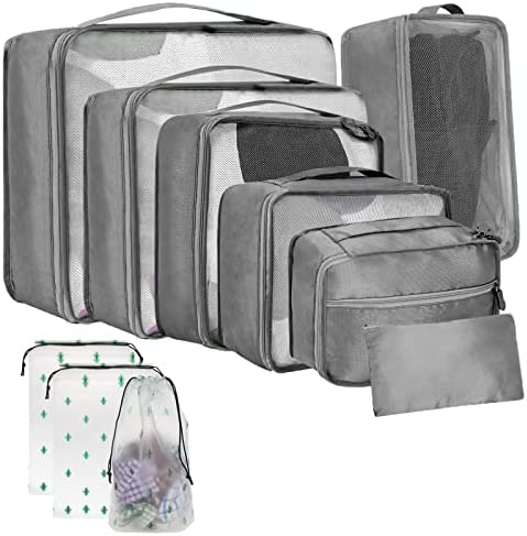 Travel Accessories Kofferorganizer, set van 10 stuks, pakzakken, lichtgewicht kledingtassenset voor rugzak en koffer, maten pakkubussen koffer (grijs)