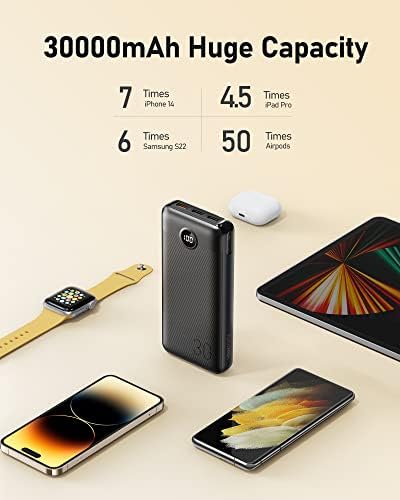 ⚡【Enorme capaciteit & brede compatibiliteit】 De 30.000mAh power bank kan iPhone 14 tot 7 keer opladen, Samsung Galaxy S22 tot 6 keer,Airpod tot 50 keer en ipad pro tot 4.5 keer. De externe accu ondersteunt het opladen met lage stroomsterkte en kan ook worden gebruikt voor kleine apparaten zoals Bluetooth-hoofdtelefoons, AirPods, fitnesstrackers, slimme horloges en meer