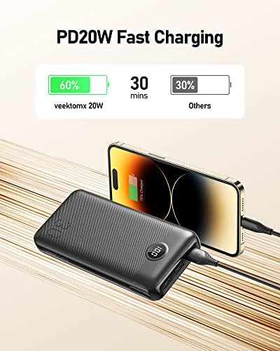 VEEKTOMX 30000mAh Power Bank 20W PD 3.0 en QC 3.0 USB C snel opladen Externe batterij met 4 Uitgangen, enorme Capaciteit draagbare opladen Compatibel met iPhone/iPad/Samsung/Tablets/USB Ventilator