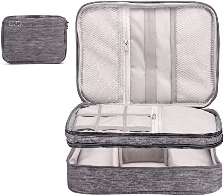 Materiaal: de grijze reiskabel-organizer bestaat uit kationisch waterdicht materiaal (polyester 300D). Waterdicht, schokbestendig en slijtvast, gemakkelijk te reinigen en vervaagt niet gemakkelijk, ontwerp met afgeronde randen, gemakkelijk te vervormen, meer ruimte, opbergtas met dubbele ritssluiting, vrij te openen en te sluiten, draagbare handgrepen duurzaam, geweldige opslag van reisgegevens