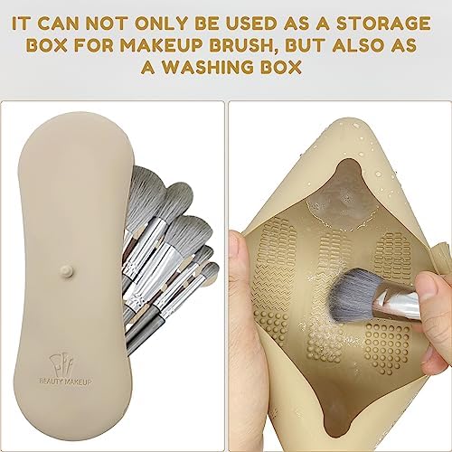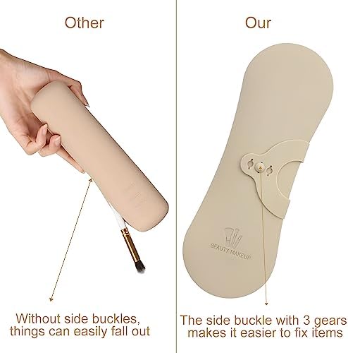 XIXKOLYU® Draagbare opbergtas voor make-upkwasten van siliconen, met zijdelingse gesp, waterdichte organizer voor reizen, opbergbox voor make-up (kaki)