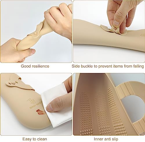 Met sponshouder: onze XIXKOLYU kwastenset-organizer bestaat uit zachte siliconen en biedt ruimte voor make-upkwasten met een diameter van maximaal 22 cm. Het kan gemakkelijk worden geplaatst en verwijderd, beschikt over anti-drop-gespen aan de zijkant en dient tegelijkertijd als make-upborstel-reinigingsgereedschap, wat het perfect maakt voor op reis.