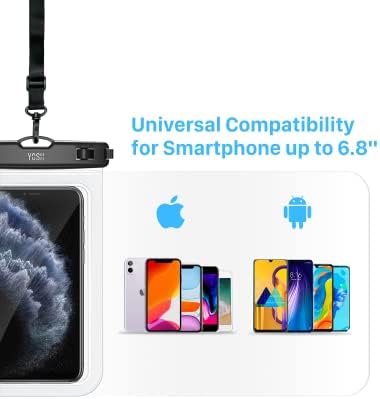 Brede compatibiliteit: het waterdichte telefoonhoesje van Yosh is compatibel voor telefoons tot 6,8 inch, zoals de iPhone 14 / 13 / 12 / 11 / 11 XS Max / XR / X / 8 / 7 / 6S Plus / One Plus / 8 Pro, de Samsung S23 / S22 / S21 / S20 / S10+ / S10 / S9 / S8, de Huawei P40 / P30 / P20 Pro / Mate 20, Xiaomi, Oppo.