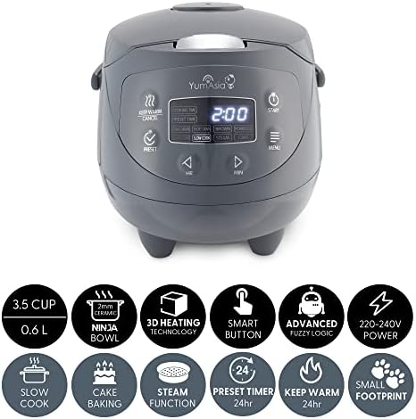 IDEAAL VOOR KLEINE KEUKENS INDIVIDUEN OF KOPPELS VAN ‘YUM ASIA’ DE RICE COOKER EXPERTS – 3,5 kopjes ongekookte rijst (1-3 personen), 0,63 liter, 220-240V, 50Hz met afneembaar EU Schuko-netsnoer