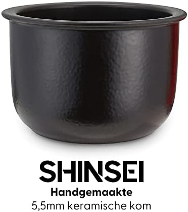 HANDGEMAAKTE 5,5MM KERAMISCHE SHINSEI BINNENKOM – Gezond, duurzaam koken met duidelijke rijstmeetlijnen met zijden print. Inclusief meertalige handleiding, maatbeker, rijstspatel en soeplepel