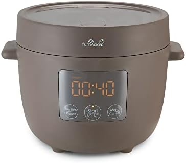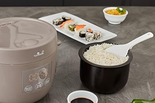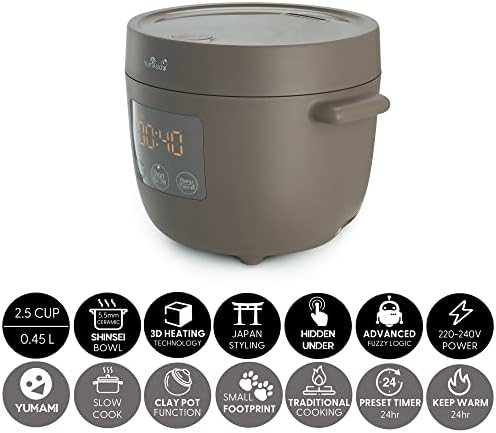 Yum Asia Tsuki mini rijstkoker met Shinsei keramische kom (2,5 kopjes, 0,45 liter) 5 rijstkookfuncties, 2 multicookerfuncties, verborgen LED-display, 220-240V (Pebble Grey)