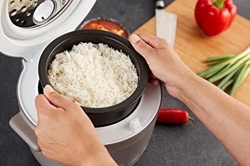 Met Tsuki krijg je een handgemaakte massief keramische SHINSEI binnenkom, een gemakkelijk schoon te maken roestvrijstalen binnendeksel, een verwijderbare stoomdop en een 180ml rijstmaatbeker voor gemakkelijke rijstmetingen, zodat je precies de hoeveelheid rijst kunt koken die je nodig hebt. Een hoogwaardige rijstspatel is inbegrepen om te helpen bij de rijstservice en ook een soeplepel.