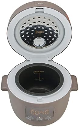 Tsuki heeft ook een automatische warmhoudfunctie van 24 uur – dit betekent dat het rijst op een ideale serveertemperatuur kan houden totdat het klaar is om te worden gegeten. Er is een aftelindicator tijdens de laatste 10 minuten van de kookcyclus en wanneer de rijst gaar is, klinkt er een pieptoon en schakelt het fornuis automatisch over naar de warmhoudmodus. Voor extra gemak is er een vooraf ingestelde tijdfunctie die tot 24 uur van tevoren kan worden ingesteld, zodat je heerlijke rijst klaar hebt staan voor als je van je werk komt of lekkere, dampende hete pap die op een koude winterochtend wacht.