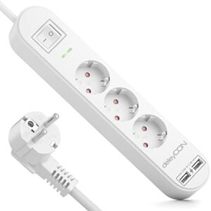 Price: (as of – Details) deleyCON 3-voudige Contactdoosstrook met 2x USB-A Betrouwbaar en veilig in huis en op kantoor Contactdoosstroken van deleyCON bieden een extra mogelijkheid om bijv. mobiele telefoons of tablets via USB te laden. Highlights – 3x veiligheidsconnectoren – Connectoren met verbeterde aanraakbeveiliging – AAN/UIT-schakelaar – Haakse geaarde stekker (stekker volgens EU-norm, type…