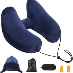 Opblaasbaar Reiskussen, Nekkussen Opblaasbaar, voor op Reis, Vliegtuig, Auto, Trein, Bank en Thuis (Marine blauw)