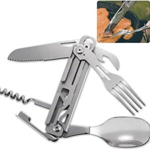 Price: (as of – Details) Ruikdly 6-in-1 campingbestek roestvrij staal set De klassieke en populaire veldbestekset is een trouwe metgezel bij het kamperen, wandelen of trekking. Met mes, vork, lepel en blikopener heb je alles wat je nodig hebt voor een snelle maaltijd. Eigenschappen: Lemmet van roestvrij 420 staal – sterk en duurzaam, langdurige scherpte…